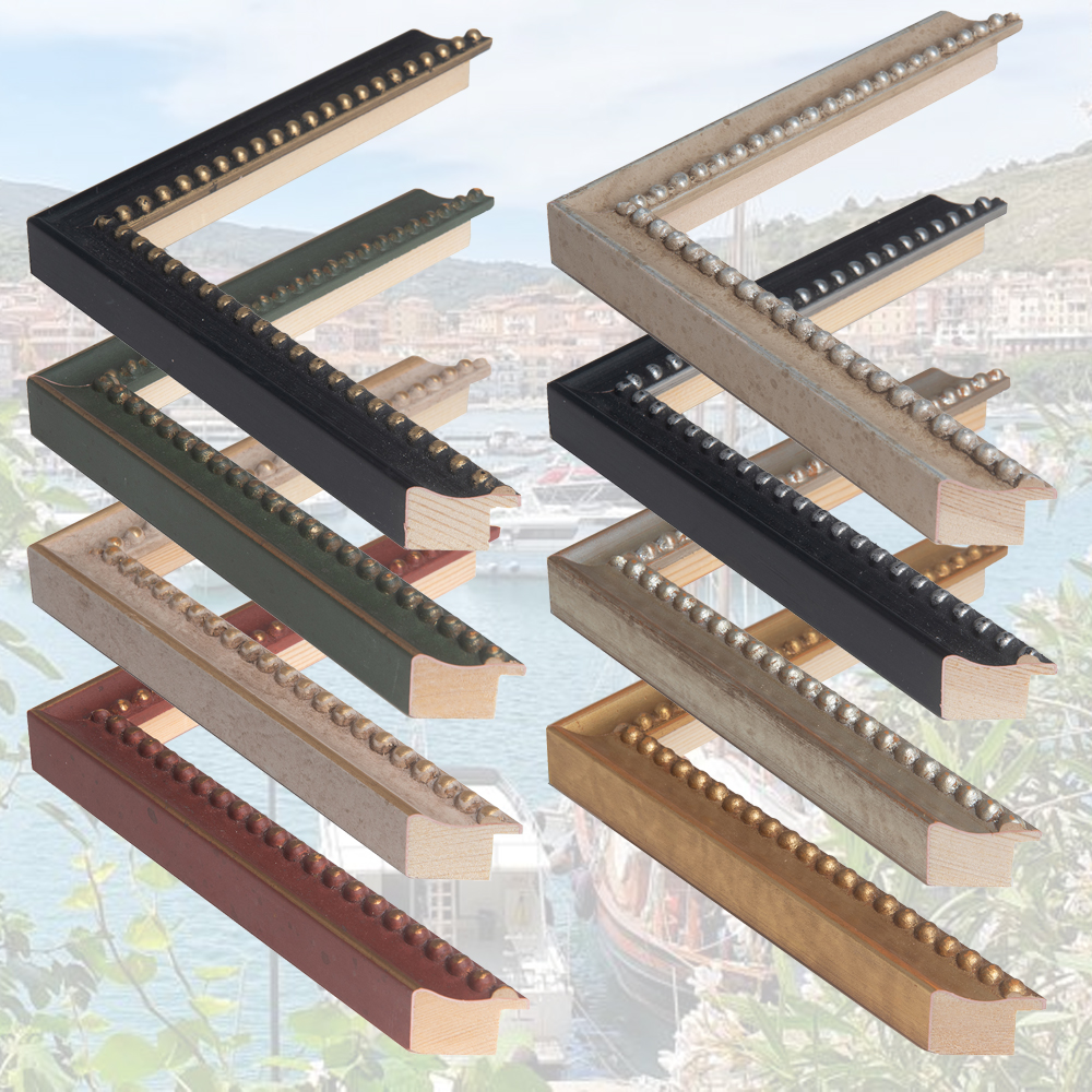 Ercole 1921 zwart met goud kraaltje is een klassieke lijst met een verfijnd profiel. Zeer geschikt voor antieke prenten en aquarellen. De kleuren zijn gebaseerd op het plaatsje Porto Ercole.
