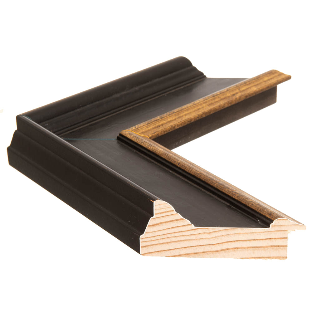 Houten lijst – Venezia – ebbenzwart goud 72 mm breed
